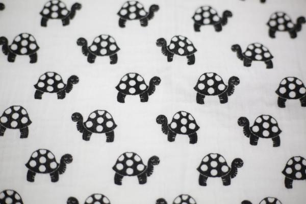 Schönes individuelles Tuch in Weiß mit schwarzen Schildkröten. Da sie Handmade sind, ist jedes ein wenig unterschiedlich und so ein Unikat.