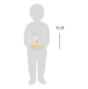 Verziert mit einem Oktopus im kindgerechten Design, regt dieses Boot Kinder zum fantasievollen Rollenspiel an. Ein riesiges Vergnügen für kleine Kapitäne! Wasserspielzeug aus Holz ist die nachhaltige Badespielzeug-Alternative zu Plastik- und Gummitieren! Da steht dem Spaß beim Rollenspiel auf hoher See nichts mehr im Wege. Klein und handlich passt das Holzboot problemlos in jede Badetasche!