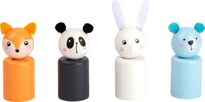 Welches Tier schafft es als Erstes in sein Häuschen? Bei diesem handlichen Ludospiel in trendigen Pastellfarben versuchen Holzfiguren in Form von Hase, Panda, Bär und Fuchs, um die Wette zu laufen. Die Würfelzahl gibt an, wie viele Schritte von der jeweiligen Figur genommen werden dürfen. Figuren mit Filzohren.