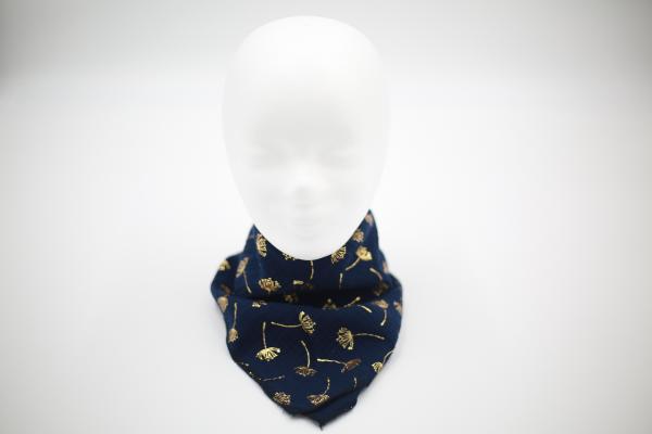 Schönes individuelles Tuch in Marineblau mit goldenen Blumen. Da sie Handmade sind, ist jedes ein wenig unterschiedlich und so ein Unikat.