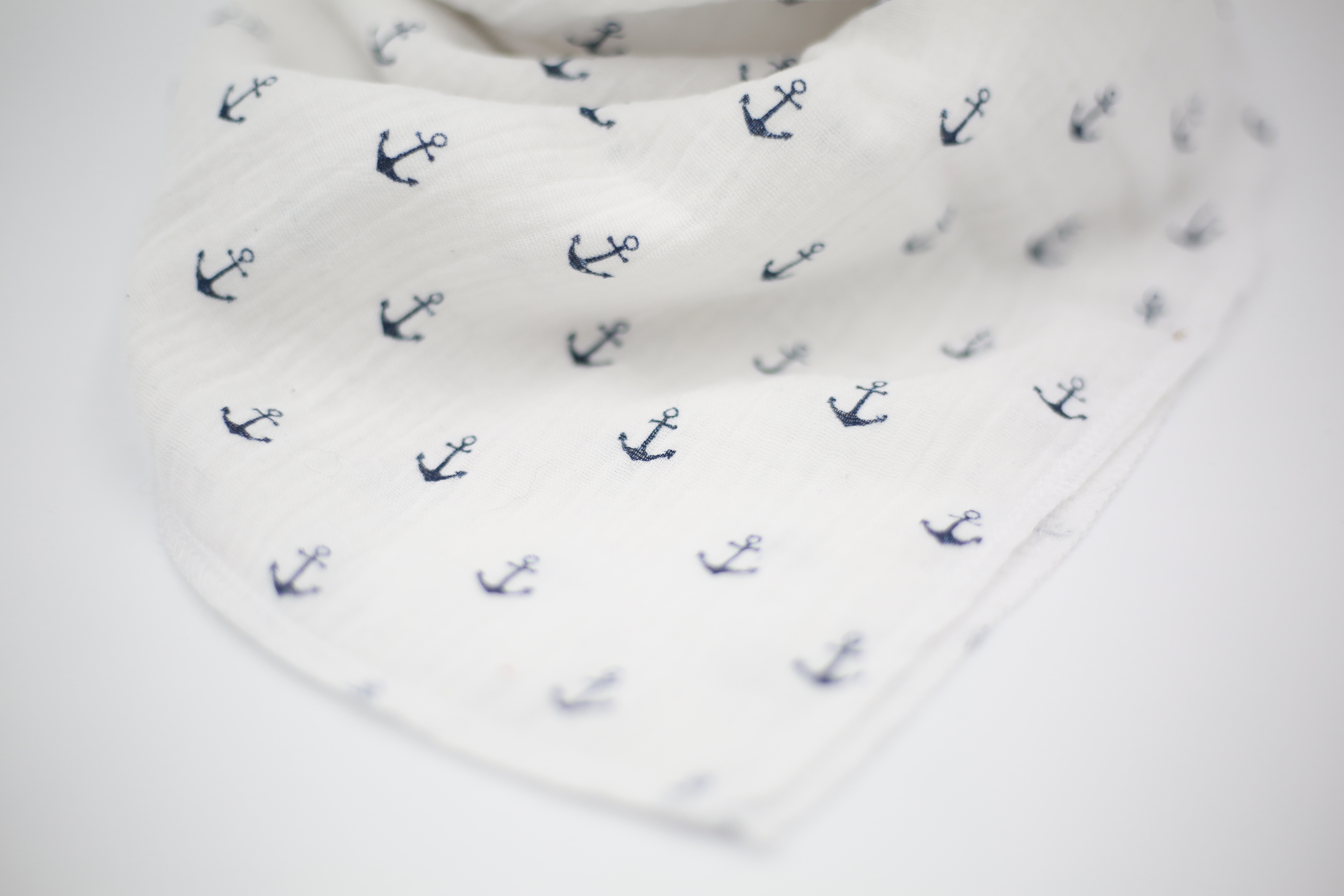 Schönes individuelles Tuch in Weiß mit Anker. Da sie Handmade sind, ist jedes ein wenig unterschiedlich und so ein Unikat.